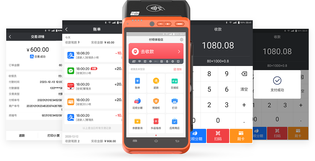 支持磁条卡、IC卡、NFC、二维码全渠道收款